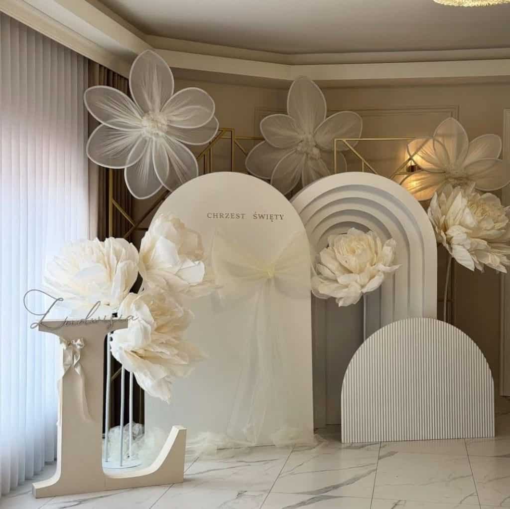 Tip UpEventi: adaugă o pancartă cu numele copilului și data botezului — un detaliu mic care face pozele și mai speciale.