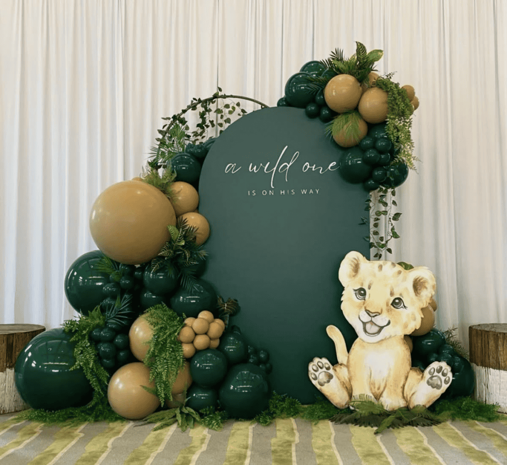 Balloon decoration for celebration event, family at party, elegant event decor, baby shower celebration, UpEventi event planning.
