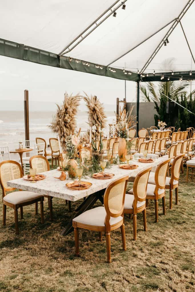 A style that remains at the top in 2026 as well. The Boho Chic wedding is about authenticity and nature: wooden tables, wildflower arrangements, warm lights and handmade details.